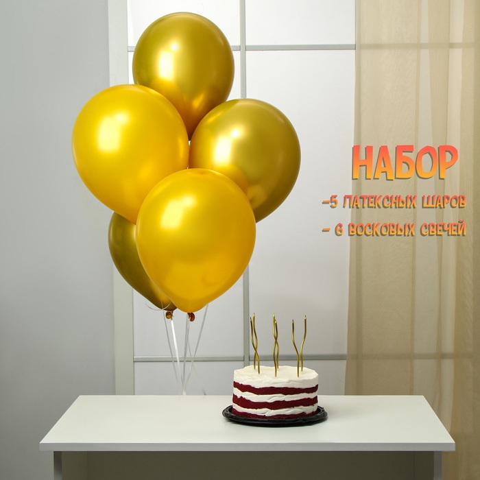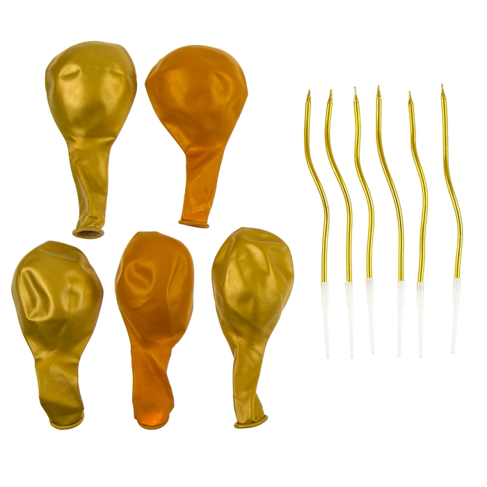 Свечи для торта 6 шт. серпантин + 5 воздушных шаров, золото
