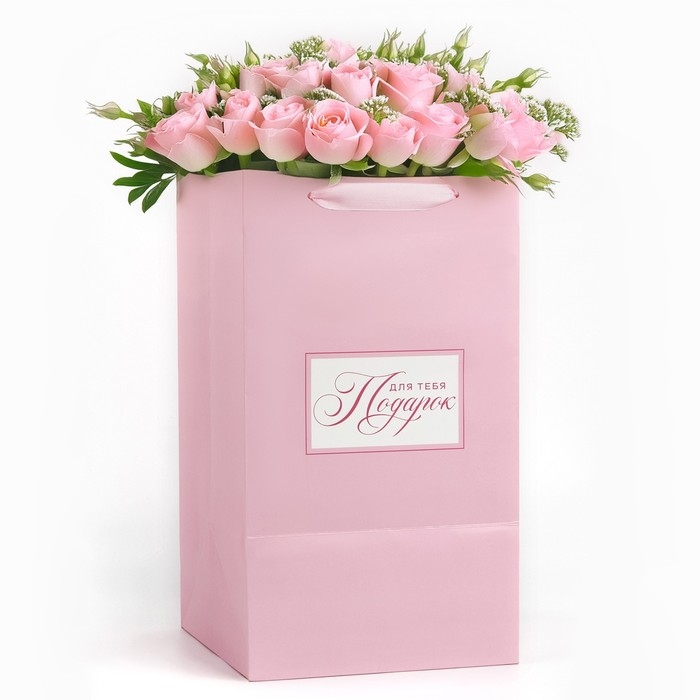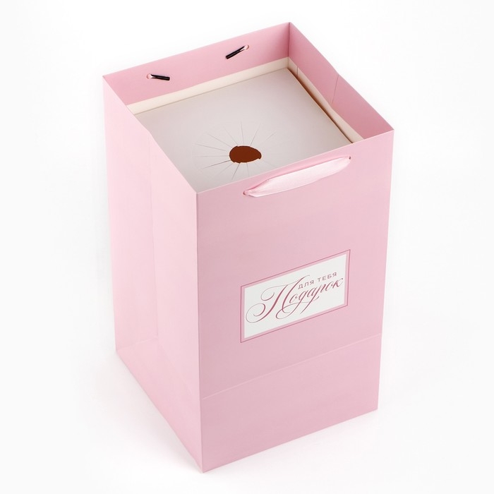 Переноска для цветов с вкладышем для фиксации, «Подарок для тебя», розовый, 35 х 20 х 20 см