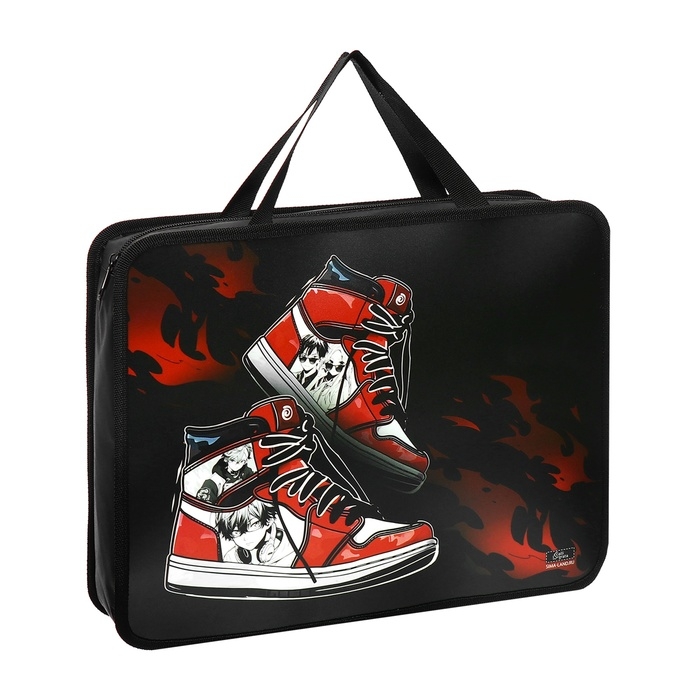 Папка с ручками А4, 330 х 260 х 75 мм, пластиковая, ручки-тесьма, Calligrata "Кеды аниме"