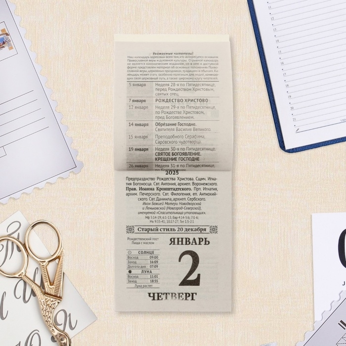 Календарь отрывной "Православные праздники и посты" 2025 год, 7,7 х 11,4 см