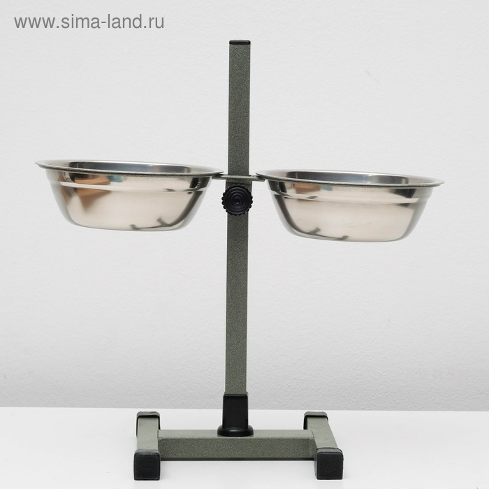 Подставка с мисками, 2 х 700 мл, высота 40 см, разборная, зелёная