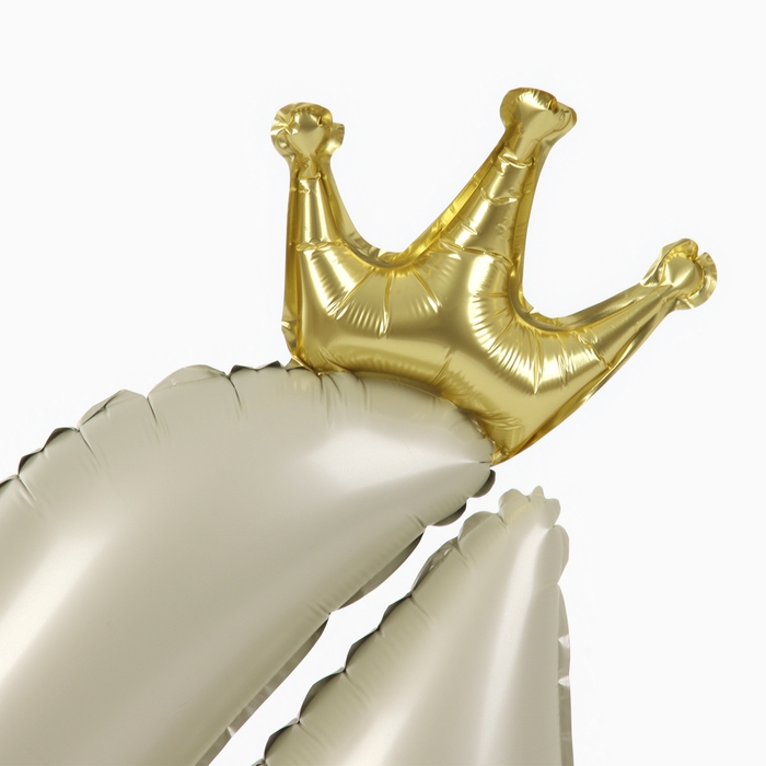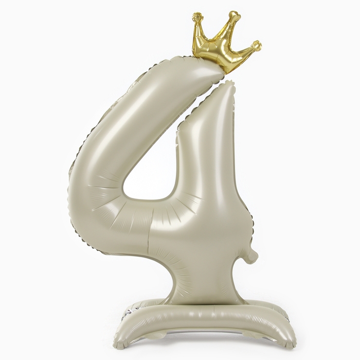 Шар фольгированный 42" «Цифра 4 с короной» на подставке, цвет взбитые сливки
