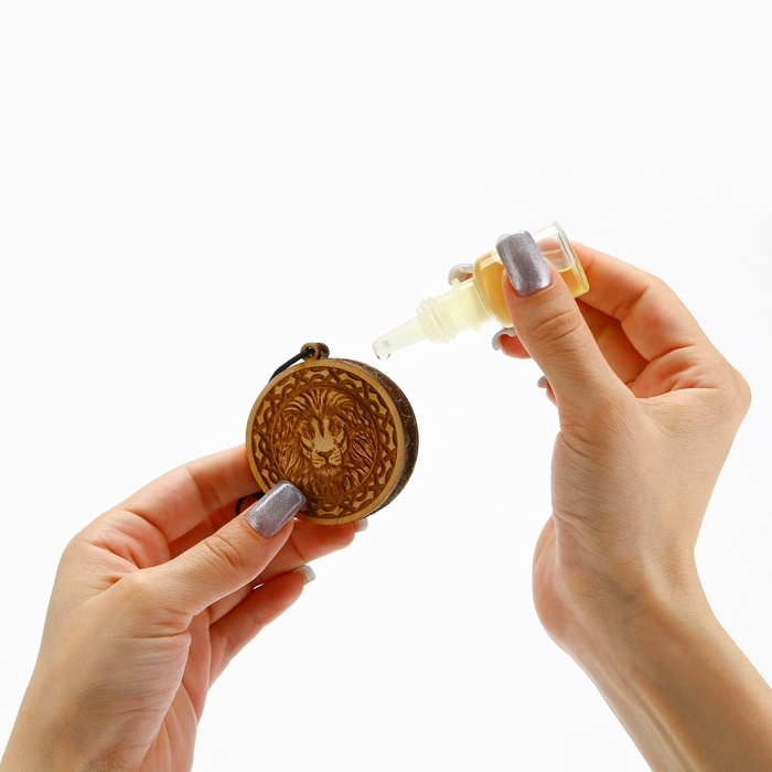 Откройте флакон с ароматизатором и пропитайте войлочную часть в подвеске 4-6 каплями. Положите подвеску на 1-2 минуты чтобы ароматизатор пропитался. Пахучка в авто готова к использованию.