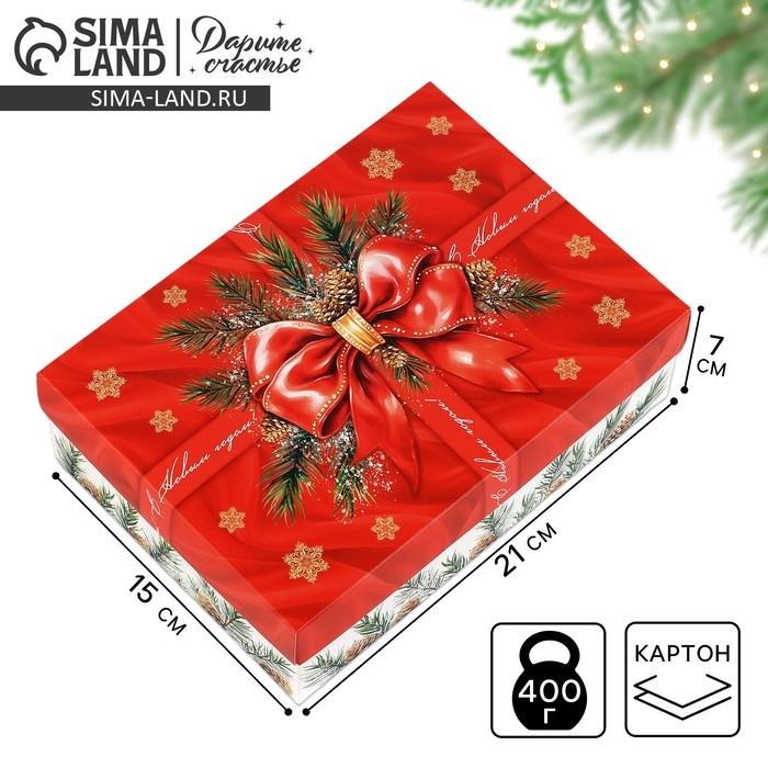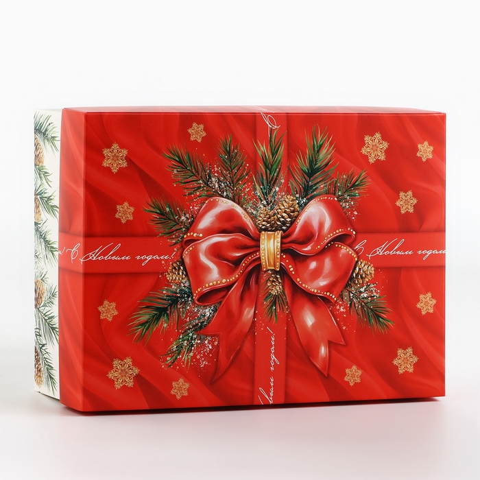 Коробка подарочная новогодняя складная «С новым годом», бант, 21 х 15 х 7 см, Новый год