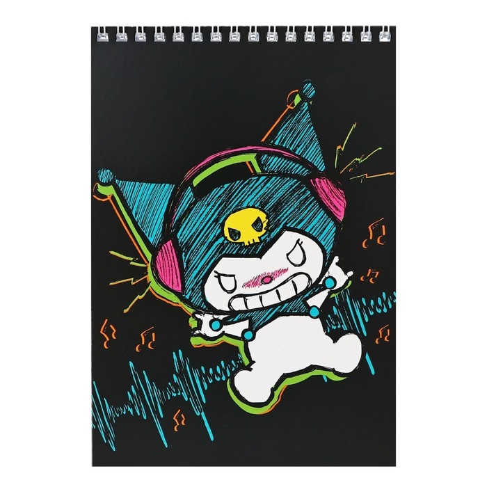 Блокнот А5, 60 листов в клетку на гребне Kuromi, обложка целлюлозный картон, блок офсет