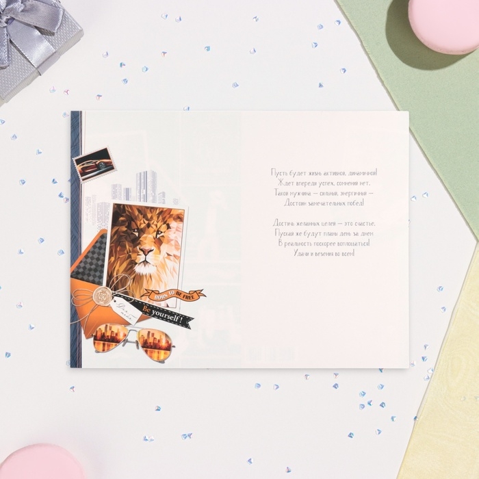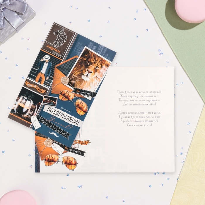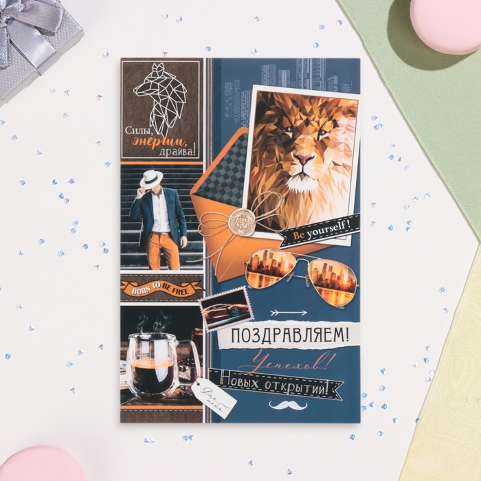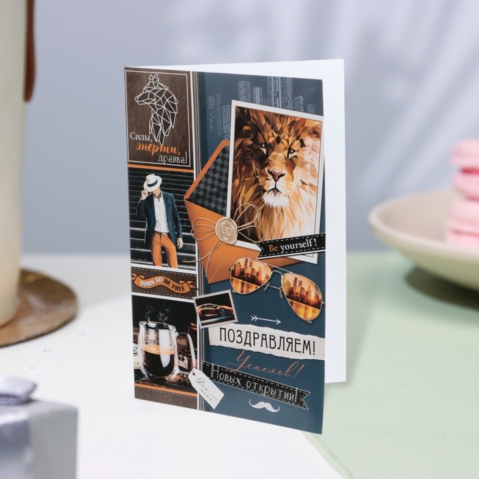 Открытка "Поздравляем! Новых открытий!" лев, 19 х 29 см