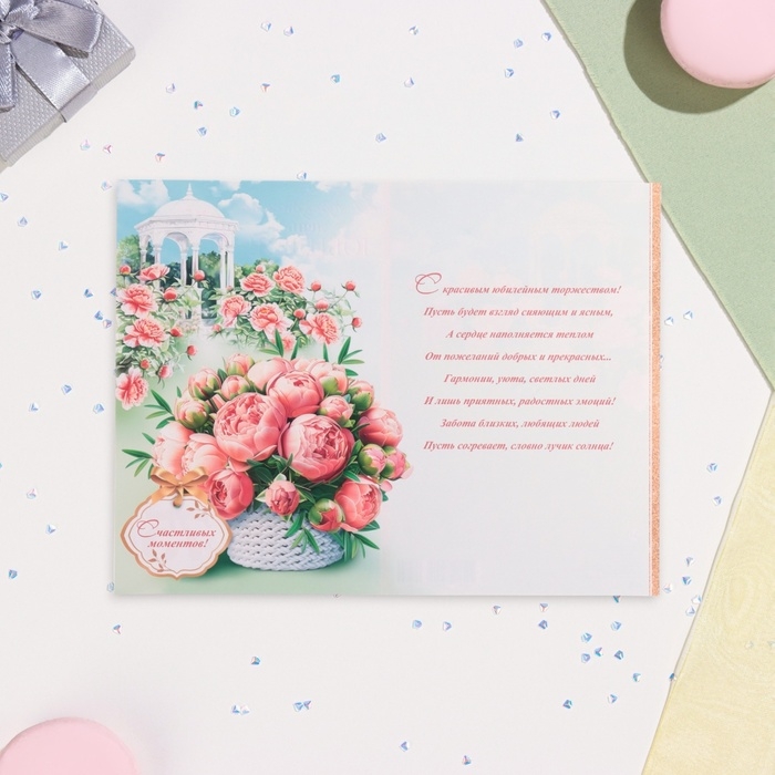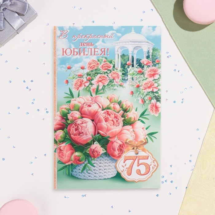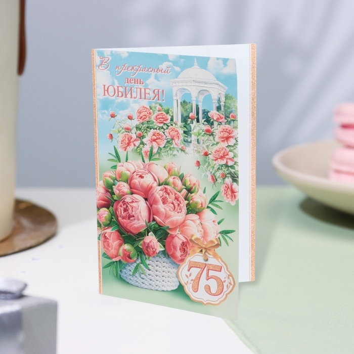 Открытка "В прекрасный День Юбилея! 75" глиттер, конгрев, пионы, 19 х 29 см