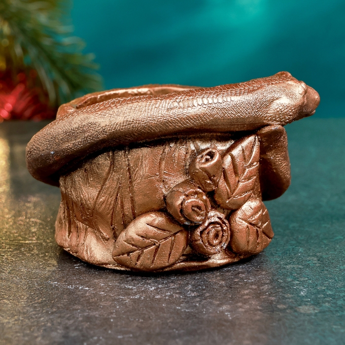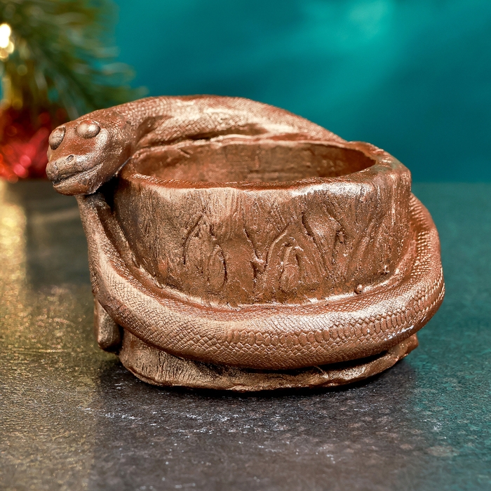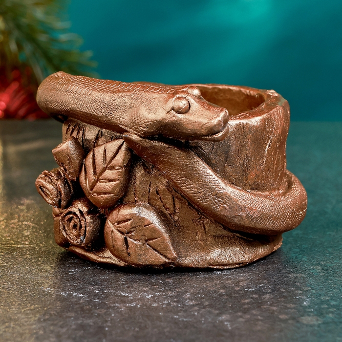 Новый год. Символ 2025. Подсвечник новогодний "Змея на пеньке" бронза, 5х7см