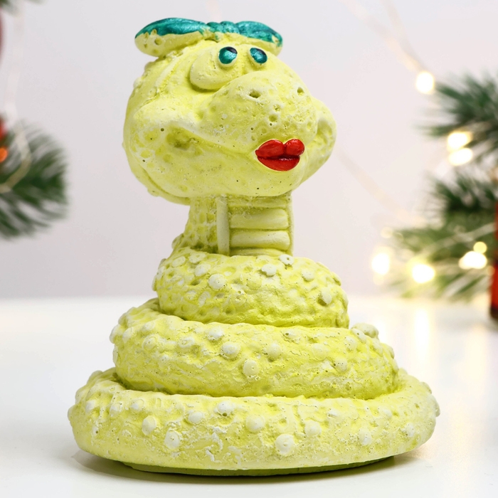 Новый год. Символ 2025. Фигура "Змея Марфа" лимонная, 8х7х6см