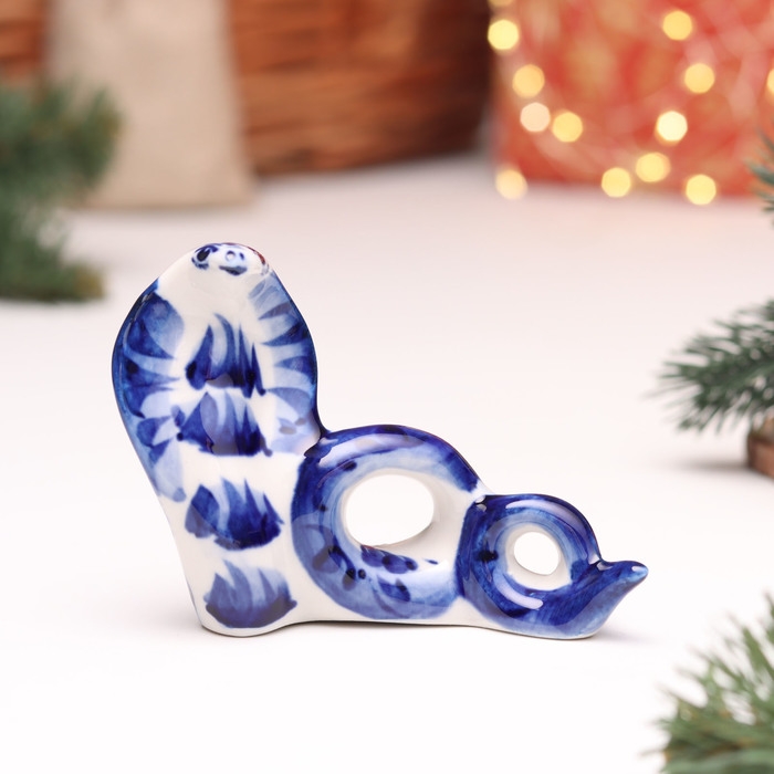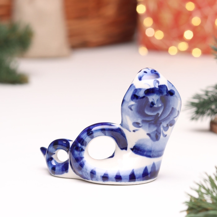 Новый год. Сувенир символ года "Змея", №14, гжель, 7 см