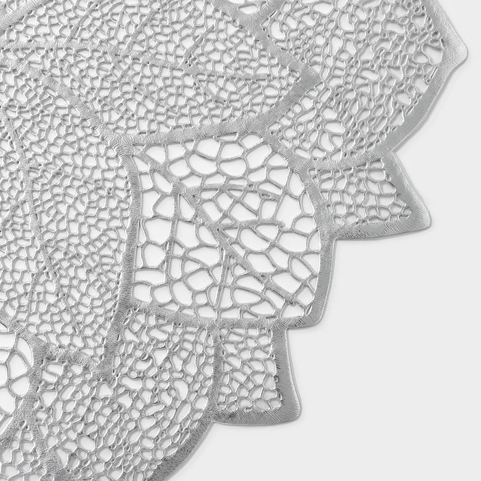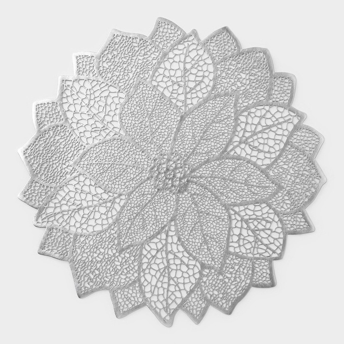Салфетка сервировочная на стол «Цветок», 38×38 см, цвет серебро
