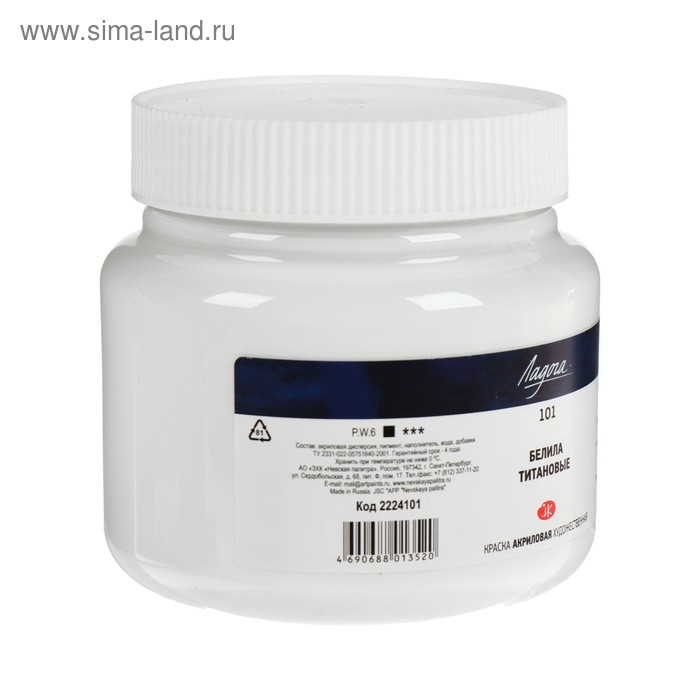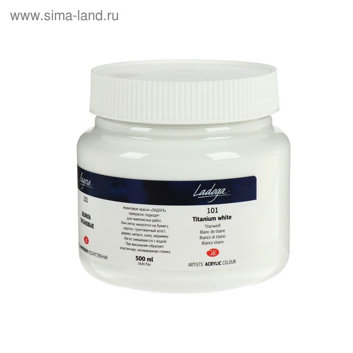 Краска акриловая художественная 500 мл, ЗХК "Ладога", белила титановые, 2224101