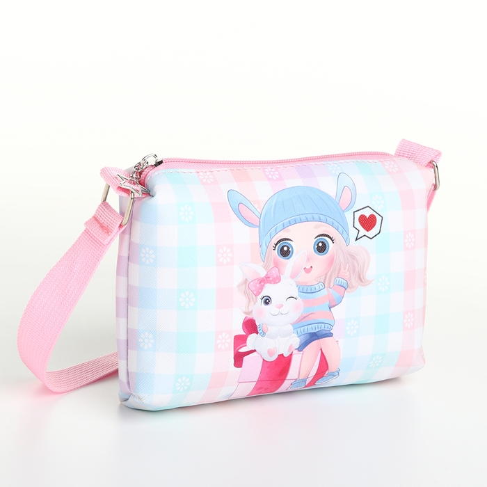 Сумка детская для девочки на молнии, цвет голубой/розовый