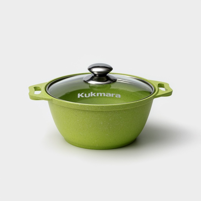 Посуда линии Trendy style разработана в соответствии с последними модными тенденциям. Кастрюля Kukmara сделана из литого алюминия, с внутренней и внешней стороны — антипригарное покрытие увеличенной прочности, изготовлено на водной основе по немецким технологиям.