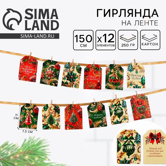 Гирлянда на ленте с предсказаниями «Новогодняя», 150см.