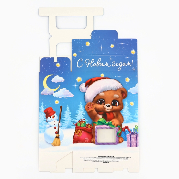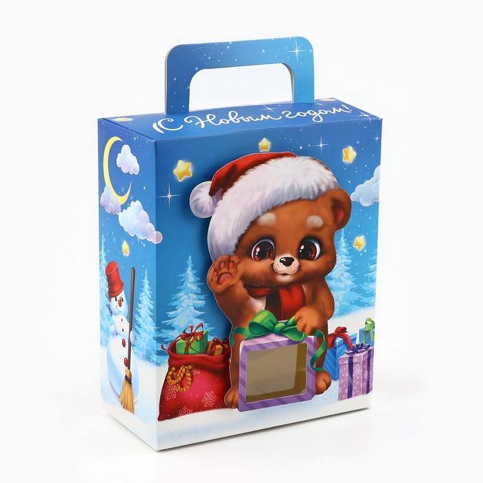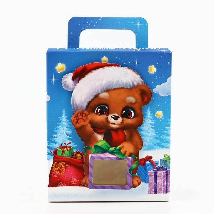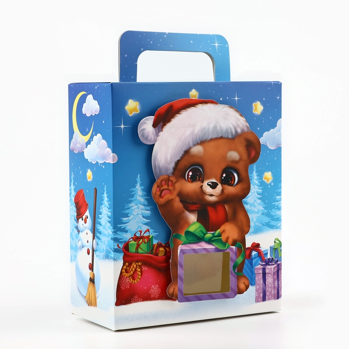 Коробка подарочная новогодняя складная с 3D эффектом «Мишка с подарком», 18 x 15 x 7.5 см, Новый год