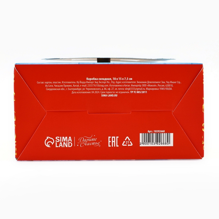 Коробка подарочная новогодняя складная с 3D эффектом «Дедушка Мороз», 18 x 15 x 7.5 см, Новый год