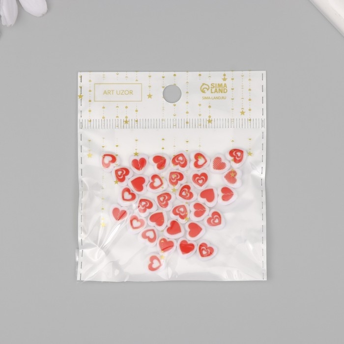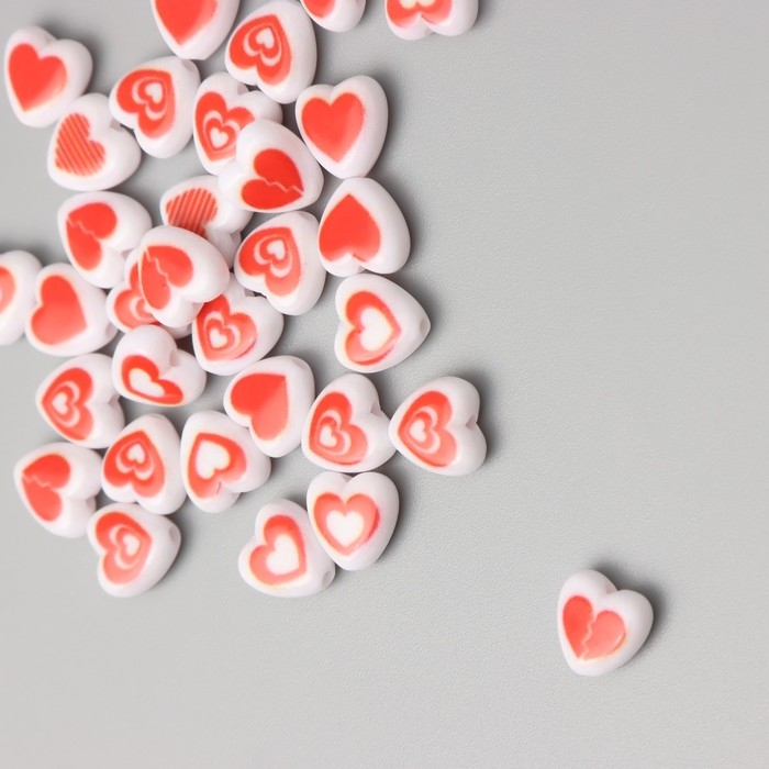 Бусины для творчества пластик "Нарисованное сердце" бело-красные набор 30 шт 0,8х0,4 см