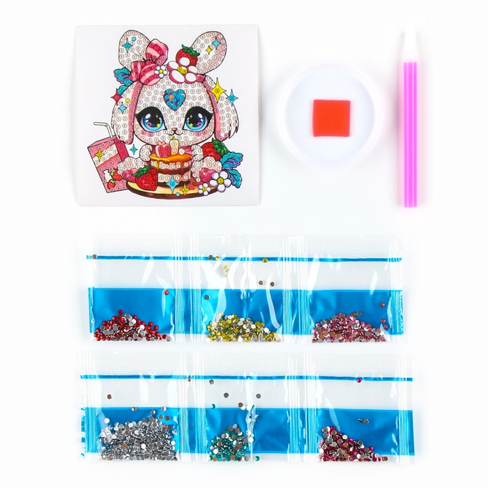 Алмазная мозаика наклейка для детей «Милый Зайка», 9 х 9 см, набор для творчества