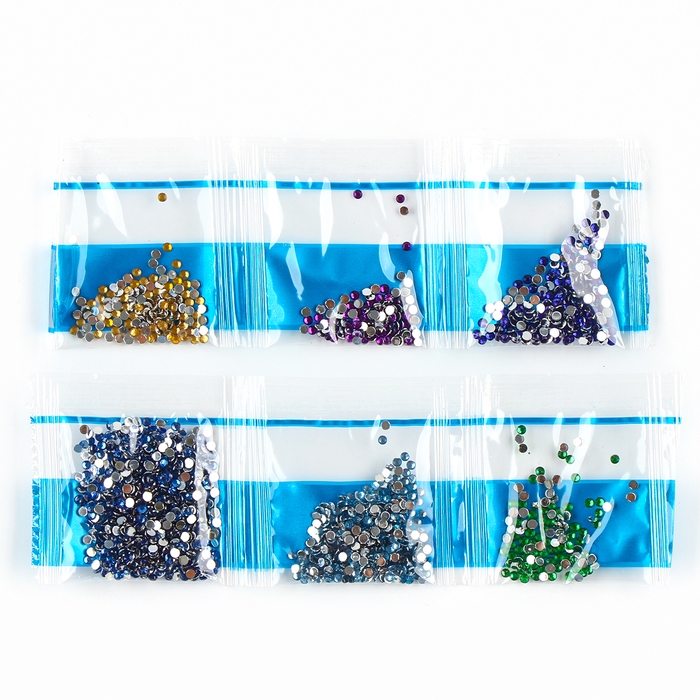 Стразы немного крупнее полей, поэтому их лучше располагать плотнее друг к другу и в шахматном порядке.