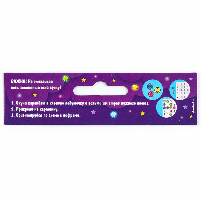 - Разложите кристаллики с помощью карандаша по указанной схеме, заполнив полотно. На картине уже обозначены необходимые оттенки. Холст с клеевым покрытием будет надёжно удерживать стразы.