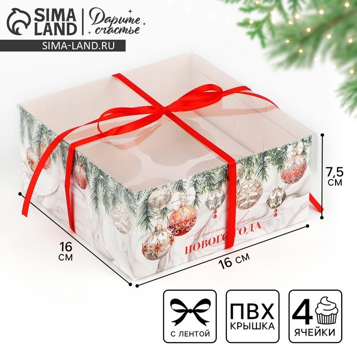 Коробка для капкейка «Счастливого Нового года!», 16 х 16 х 7.5 см, Новый год