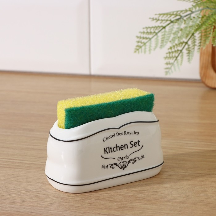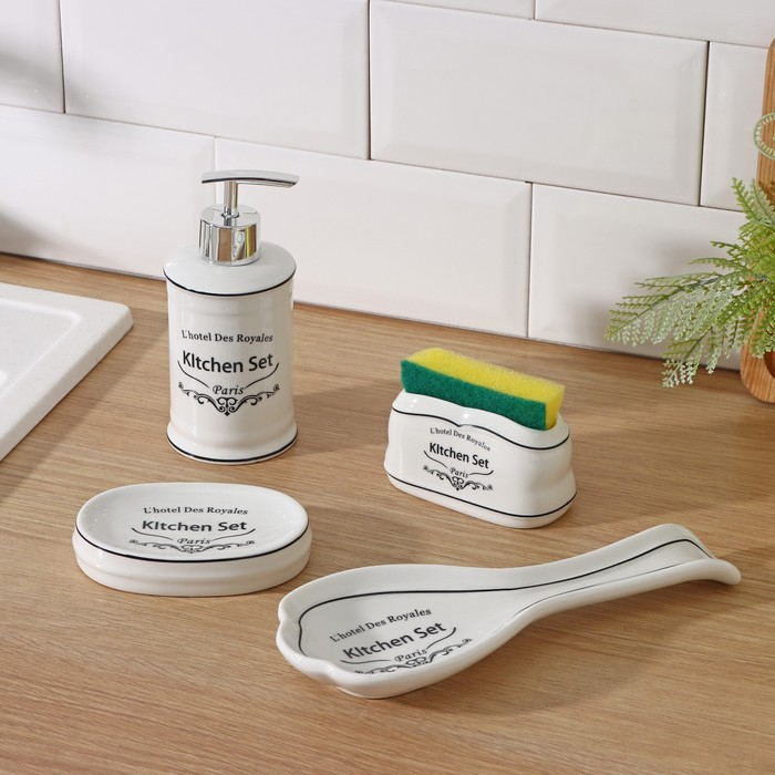Набор аксессуаров для кухни Доляна «Уют», 4 предмета (дозатор 300 мл, мыльница, подставка для губки, подставка для ложки), цвет белый