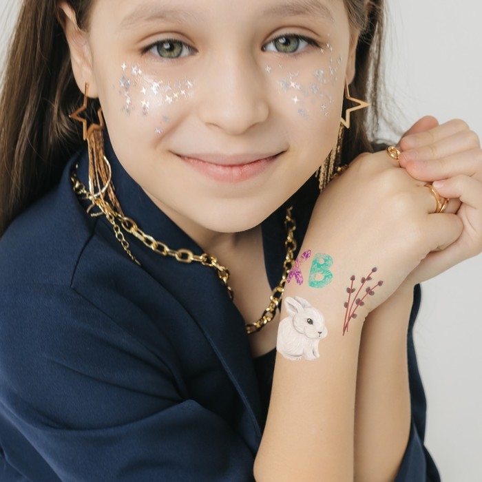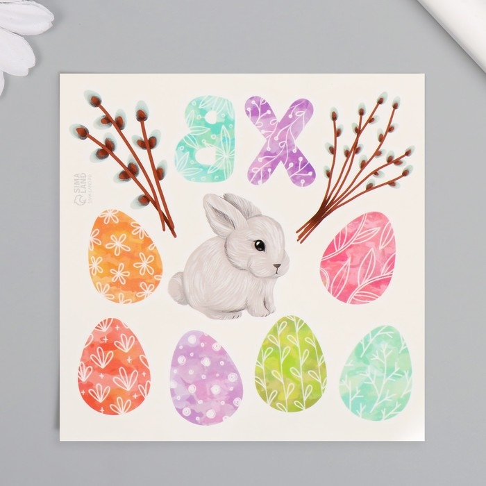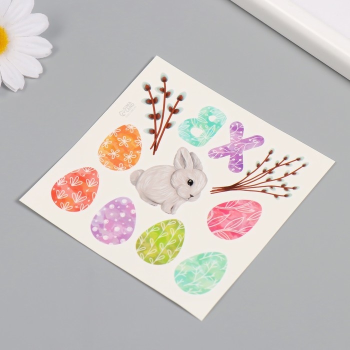 Татуировка на тело цветная "Пасхальные яички и кролик" 10х10 см