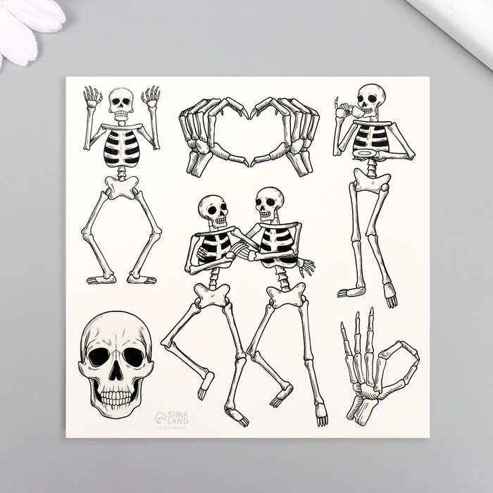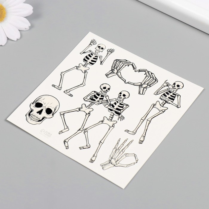 Татуировка на тело чёрная "Скелеты" 10х10 см