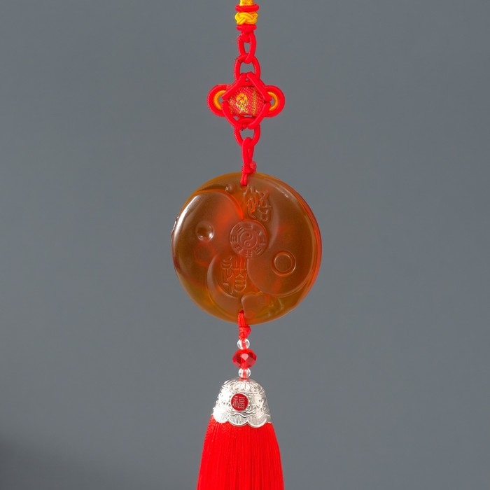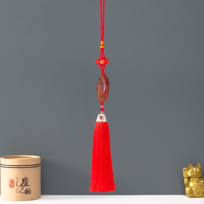 Подвеска пластик "Кулон Багуа" имитация янтаря 1х5х33 см