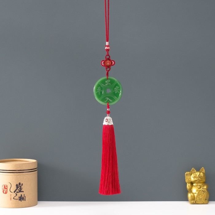 Подвеска пластик "Древняя монета" имитация нефрита 1х5х33 см