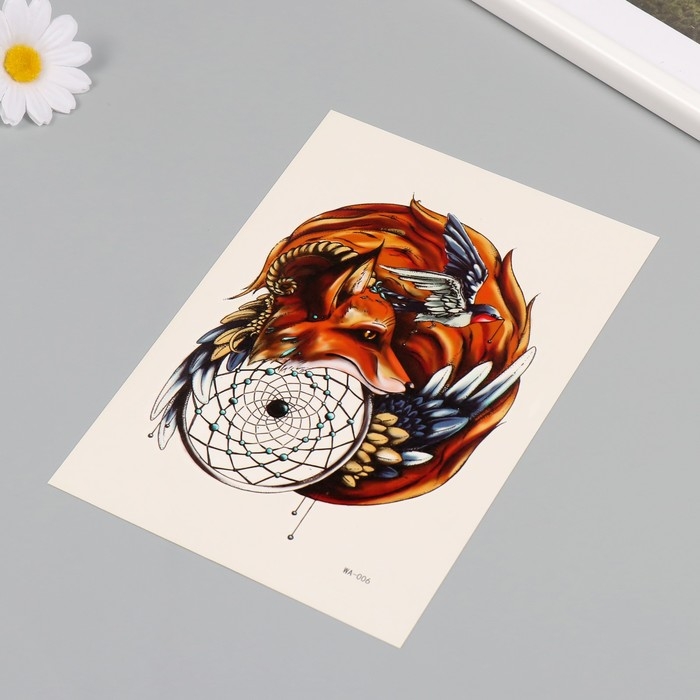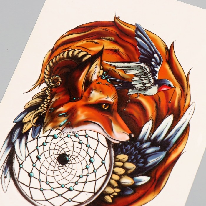 Татуировка на тело цветная "Лиса - хранитель снов" 26,1х14,6 см