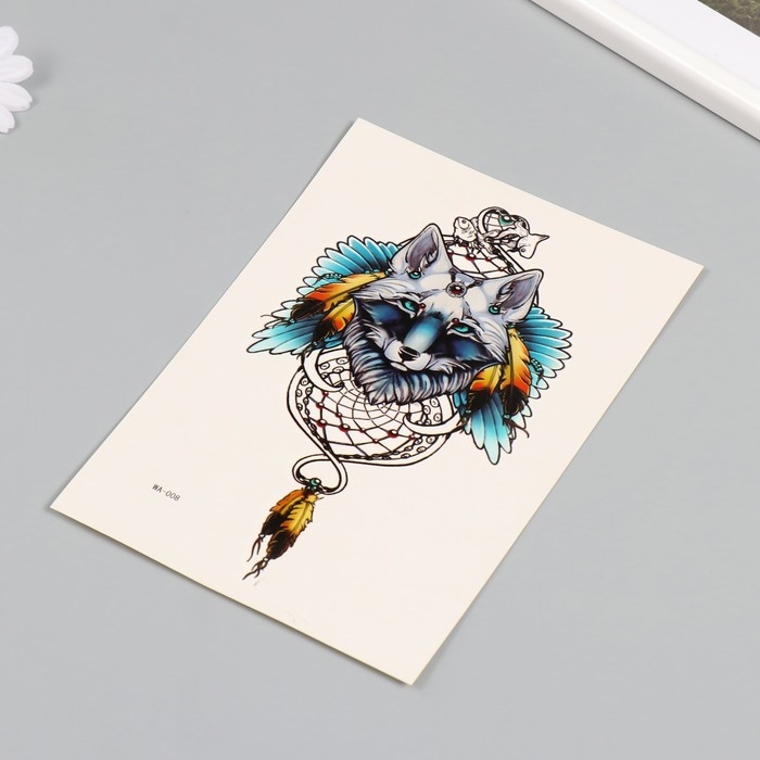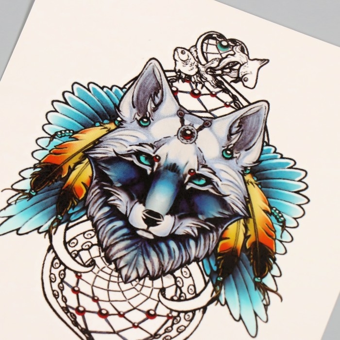 Татуировка на тело цветная "Волк - хранитель снов" 26,1х14,6 см