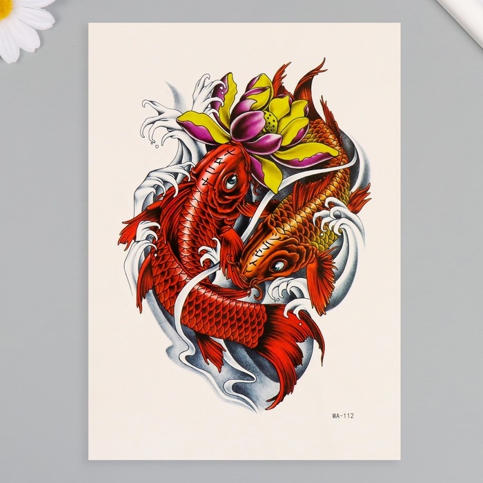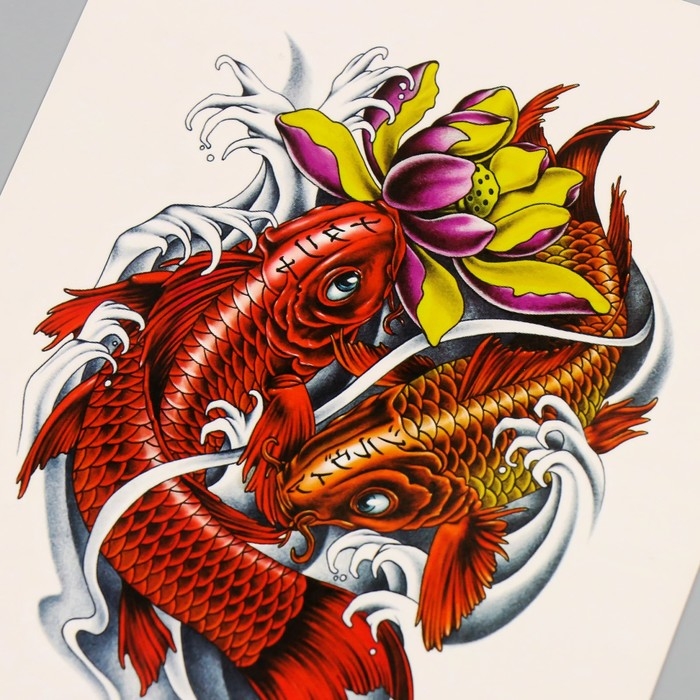 Татуировка на тело цветная "Красные карпы" 26,1х14,6 см