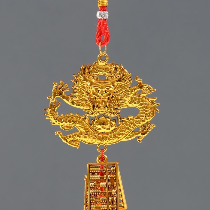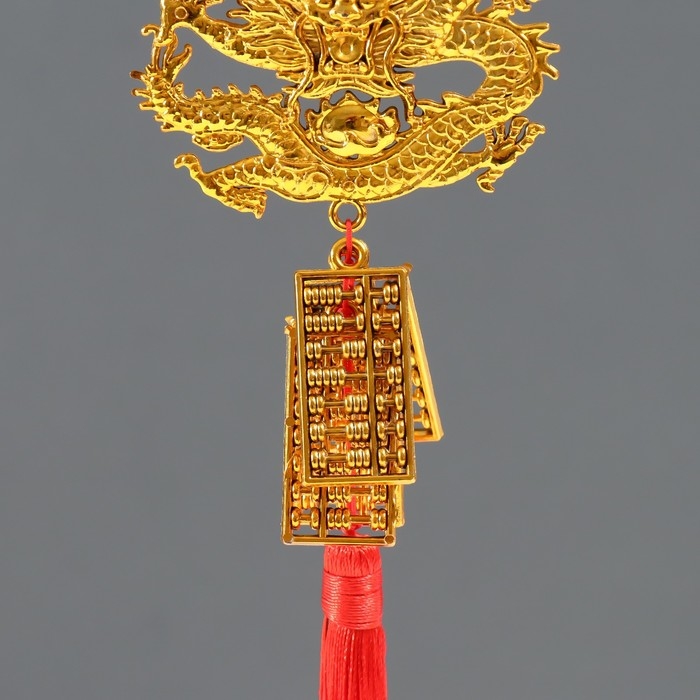 Подвеска пластик, текстиль "Золотой дракон и счёты - На богатство" 2х7,5х38 см