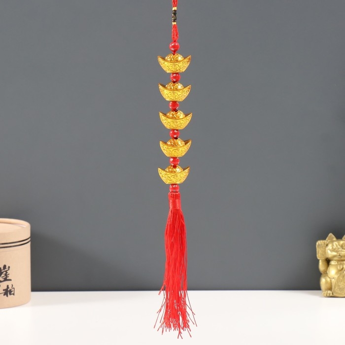Подвеска пластик, текстиль "Слитки ямб" 5 шт 1,7х3,3х36 см