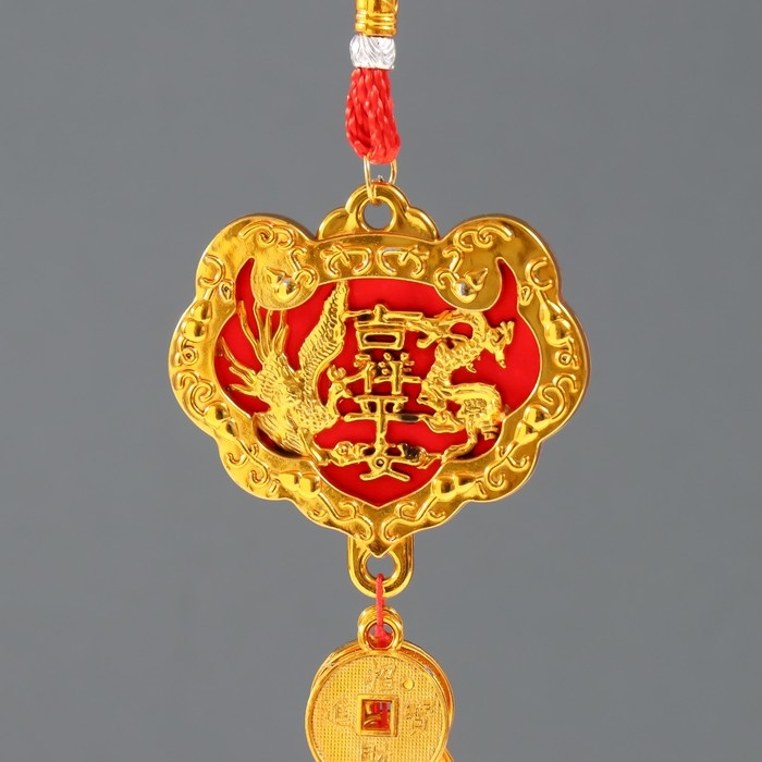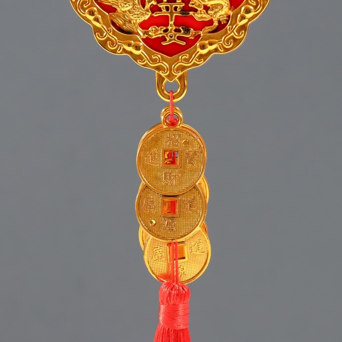 Подвеска пластик, текстиль "Дракон и феникс" 8 монет 1,8х7х37 см