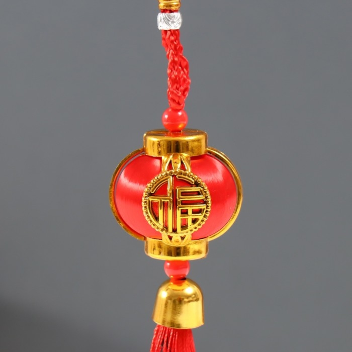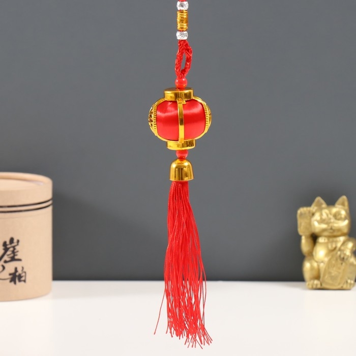 Подвеска пластик, текстиль "Китайский фонарик с колокольчиком" 4х4х18 см
