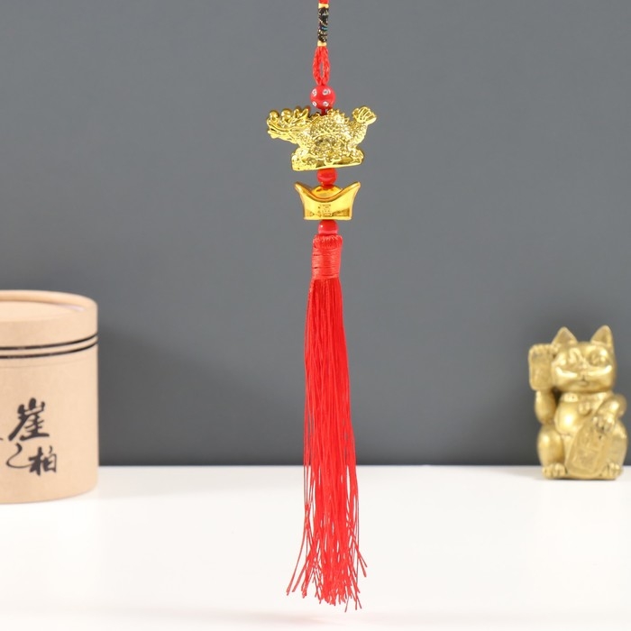 Подвеска пластик, текстиль "Золотой дракон и слиток ямб" 1,5х4,5х27 см
