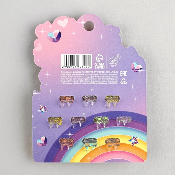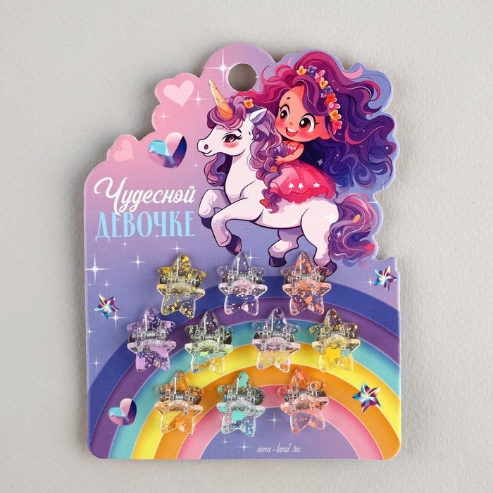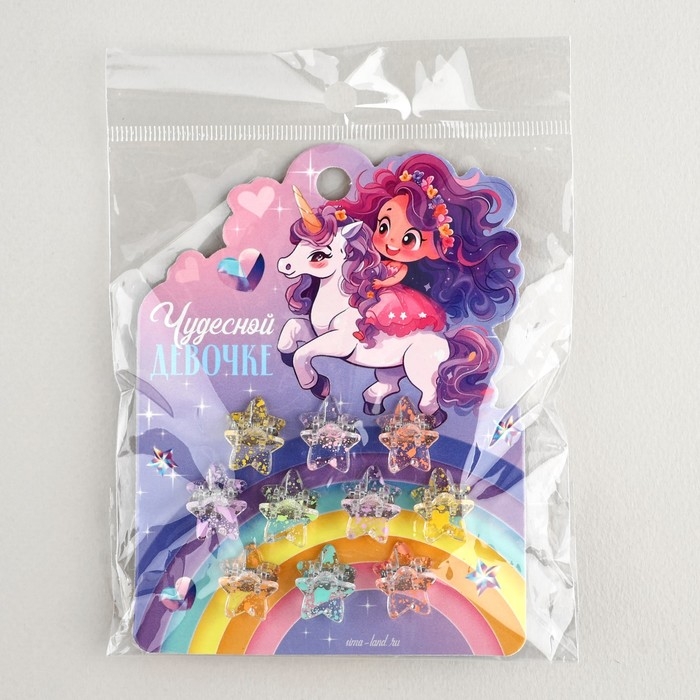 Краб для волос «Чудесной девочке», набор 10 шт.,1,5 х1,3 х 1 см