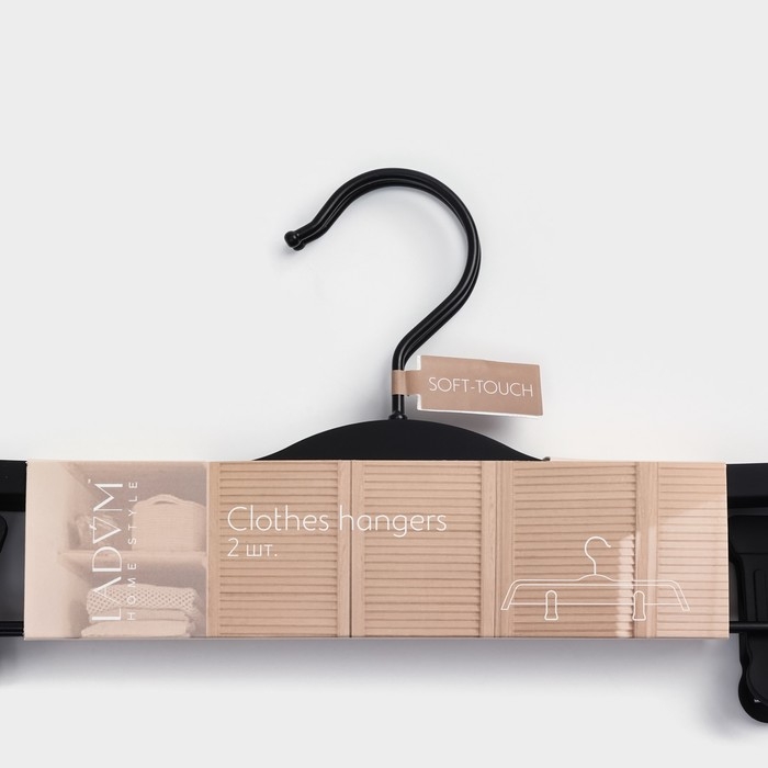 Плечики - вешалки для одежды LaDо́m Soft-touch, 37,5×15,5×1,1 см, 2 шт, с зажимами