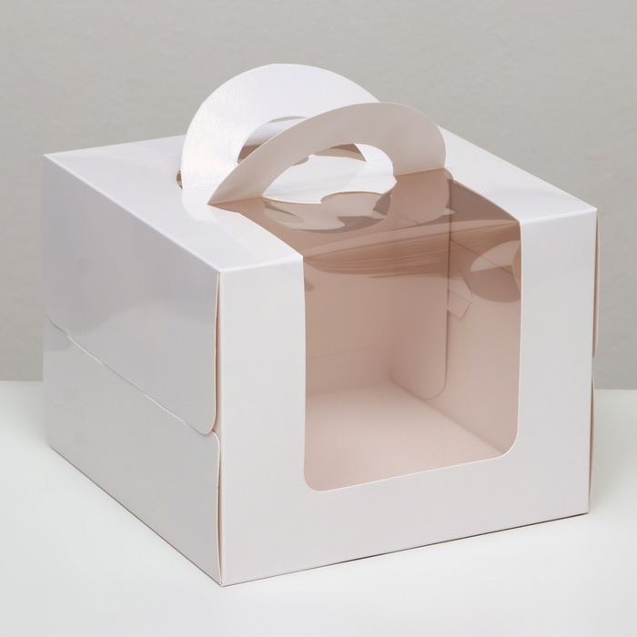 Коробка под бенто-торт с окном, белая, 18 х 18 х 14 см