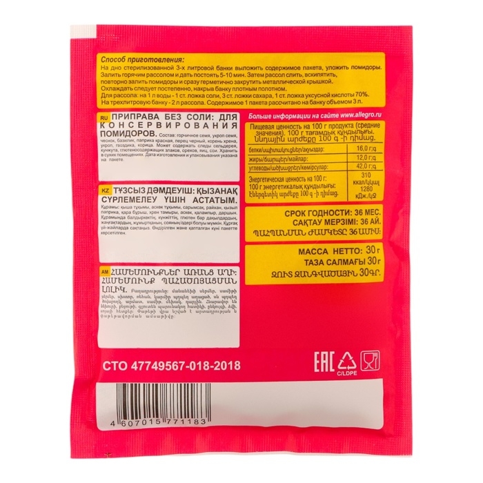 Приправа для консервирования помидоров "Эстетика вкуса" - это идеальное сочетание специй и трав, предназначенное для придания вашим домашним консервам из помидоров неповторимого вкуса и аромата. В состав этой приправы входят только натуральные ингредиенты, такие как чеснок, базилик, укроп и другие ароматные травы.