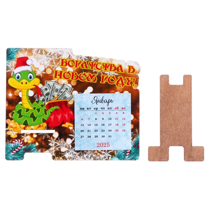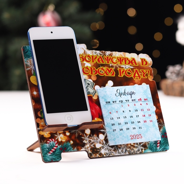 Подставка под телефон с календарем "Богатства!" символ года, кошелёк