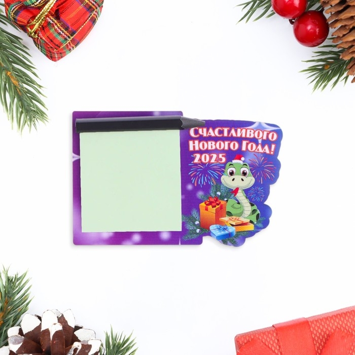 Магнит новогодний, змея, с блоком для записи "Счастливого Нового Года!" символ года