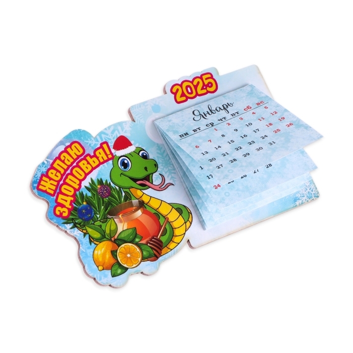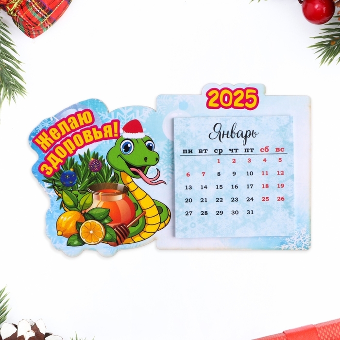 Магнит новогодний, змея, с календарем "Желаю здоровья!" символ года, лимон