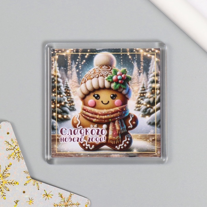 Новогодний магнит акрил "Новогодний микс" 5,7х5,7 см МИКС 10 видов