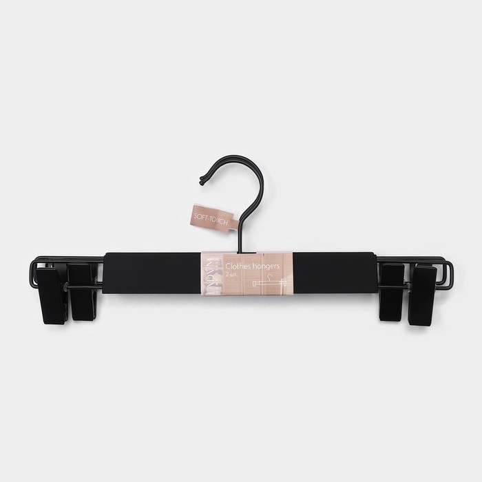 Вешалки для брюк и юбок LaDо́m Soft-touch, 32,5×13 см, 2 шт, с зажимами, цвет чёрный