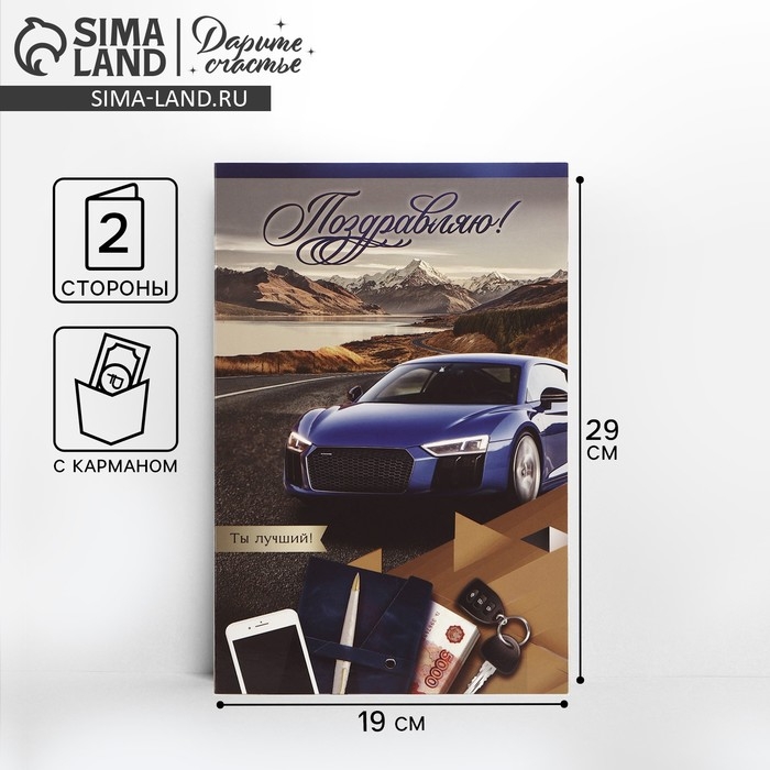 Открытка поздравительная «Поздравляю!», машина, 19 х 29 см