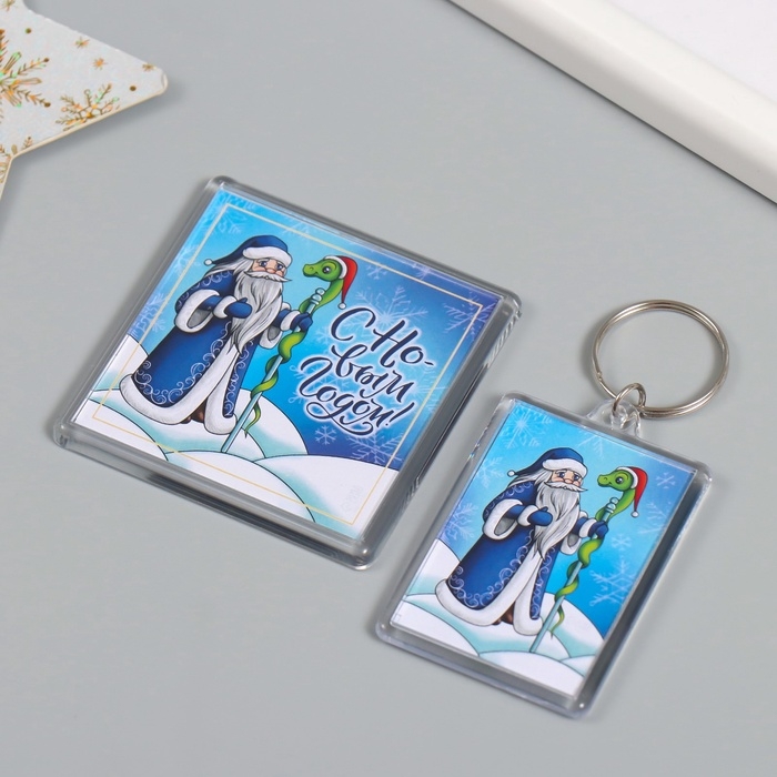 Новогодний набор "Дедушка и змейка" (брелок 3,5х5 см, Новогодний магнит 5,7х5,7 см)